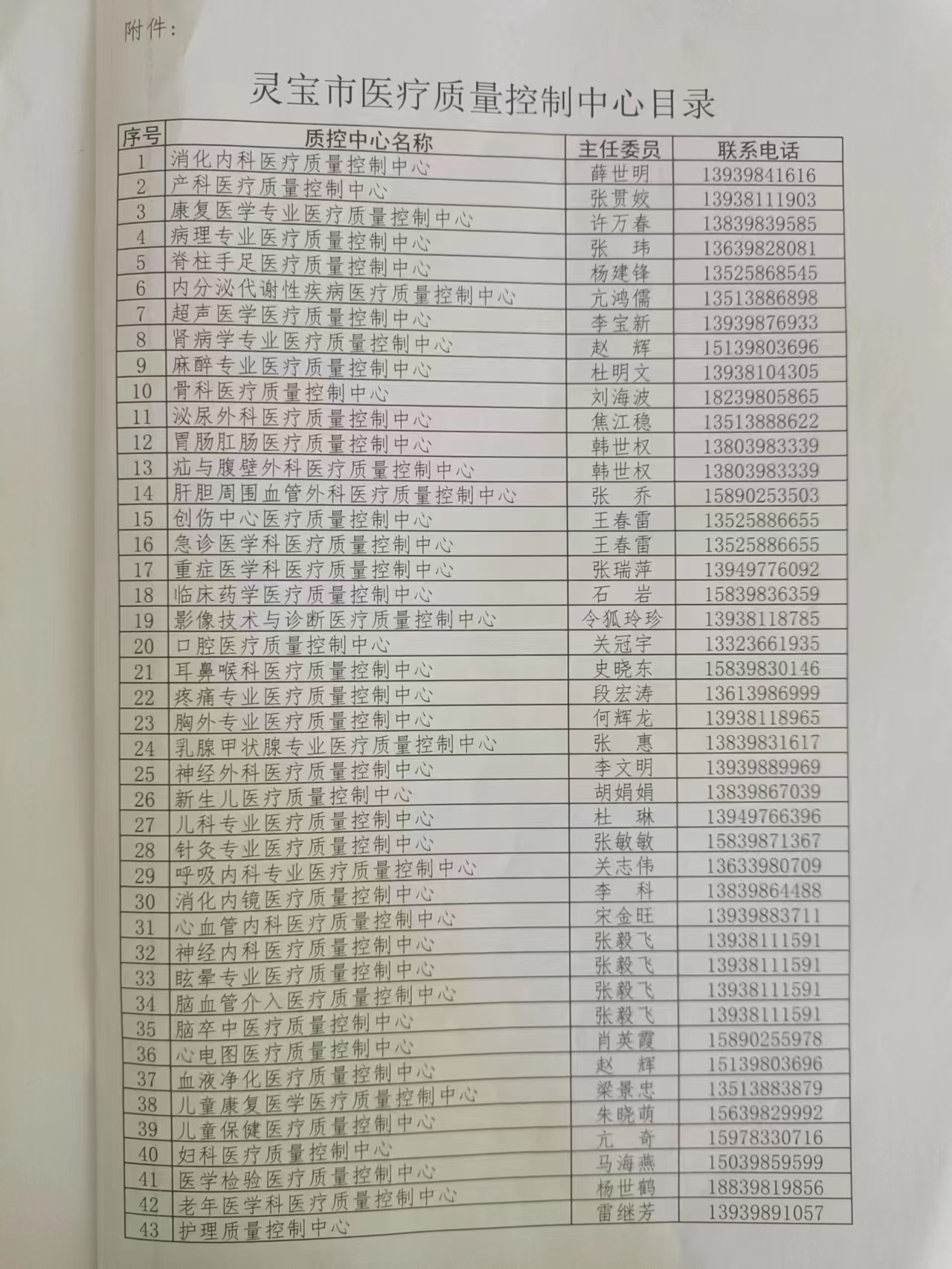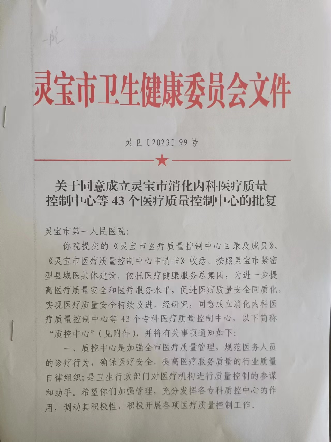 【织网行动县级】关于同意成立灵宝市消化内科医疗质量控制中心等43个医疗质量控制中心的批复