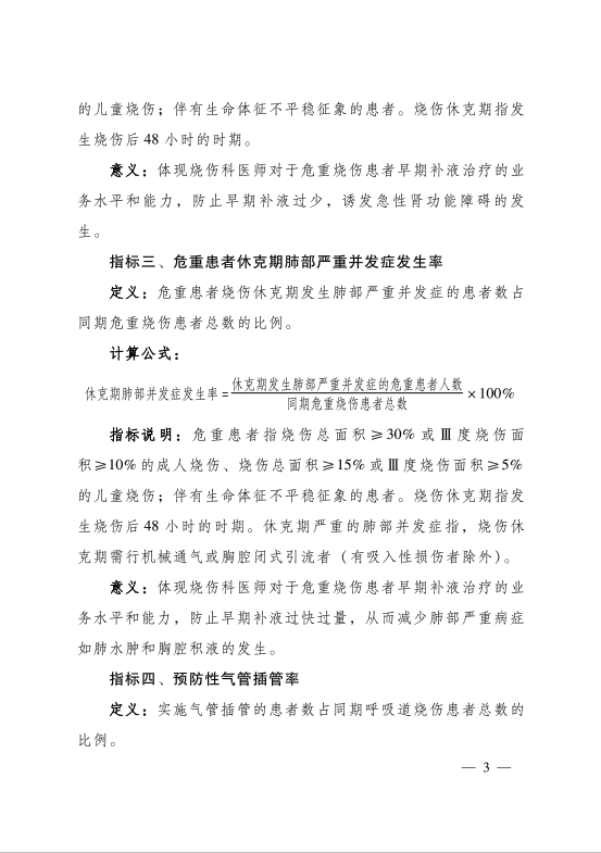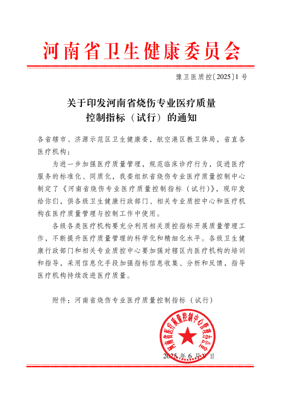 关于印发河南省烧伤专业医疗质量控制指标(试行)的通知
