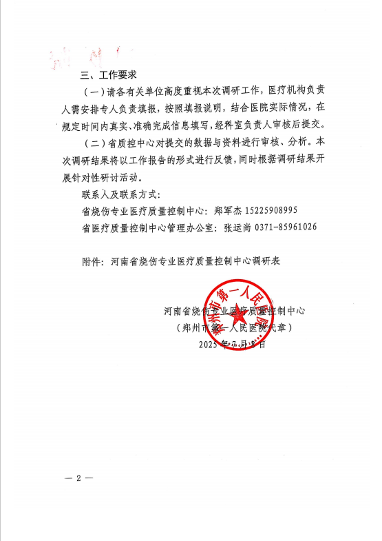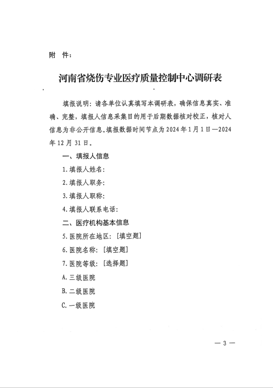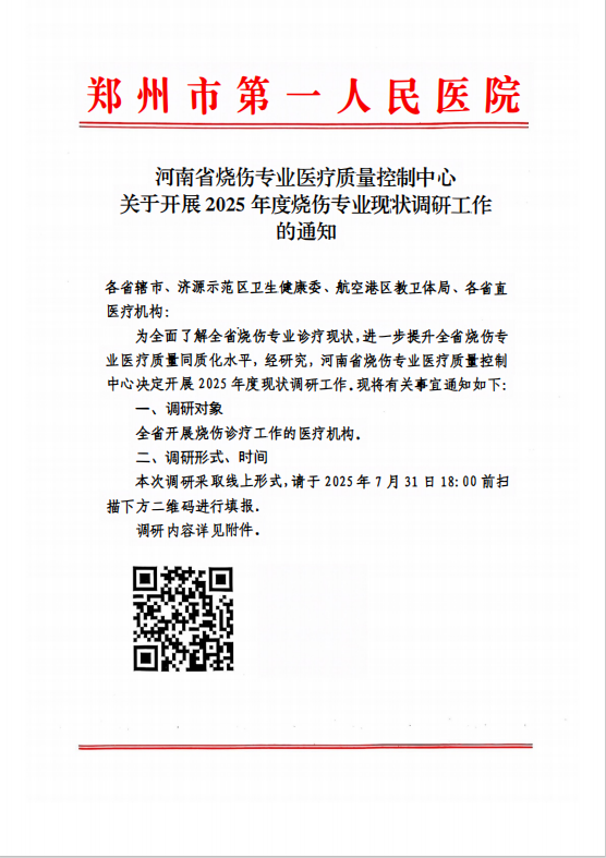 河南省烧伤专业医疗质量控制中心关于开展2025年度烧伤专业现状调研工作的通知