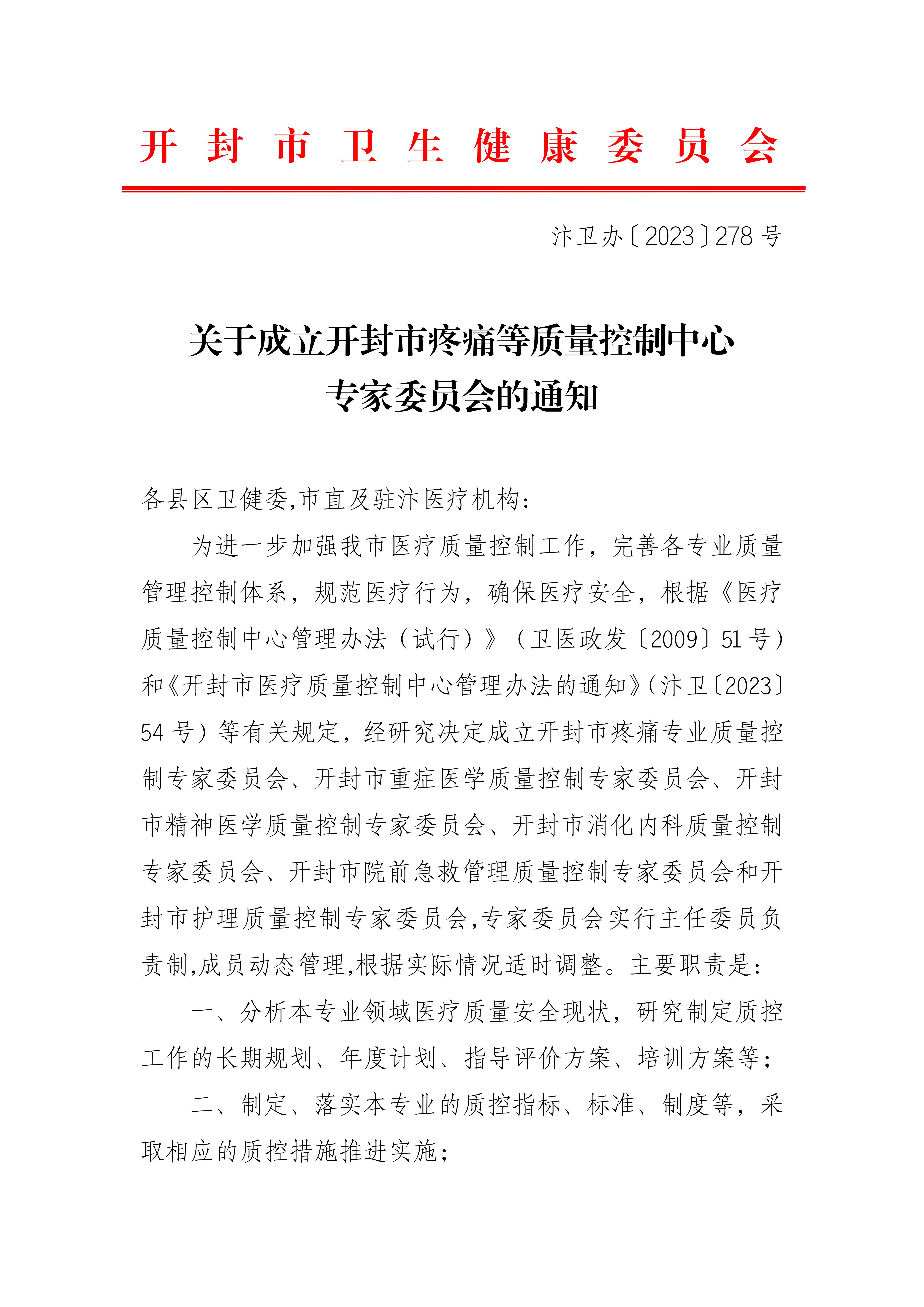 开封市卫健委关于成立开封市消化内科等质量控制中心专家委员会的通知