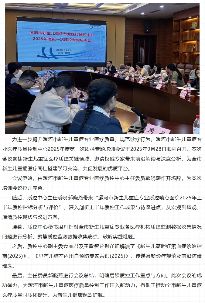 漯河市新生儿重症专业医疗质量控制中心2025年度第一次质控专题培训会议圆满举办