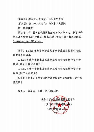 2025 年焦作市新生儿重症专业医疗质量控制中心现场指导评价细则