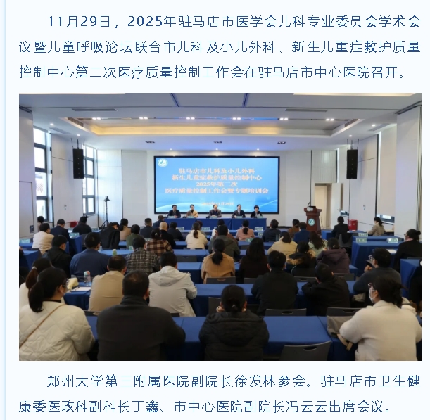 驻马店市儿科学会暨儿童呼吸论坛联合市儿科及小儿外科、新生儿重症救护质控中心第二次医疗质控会召开