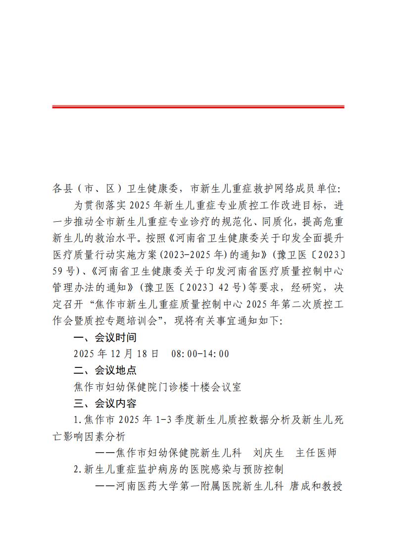 关于召开焦作市新生儿重症质量控制中心2025年第二次质控工作会暨质控专题培训会的通知_01